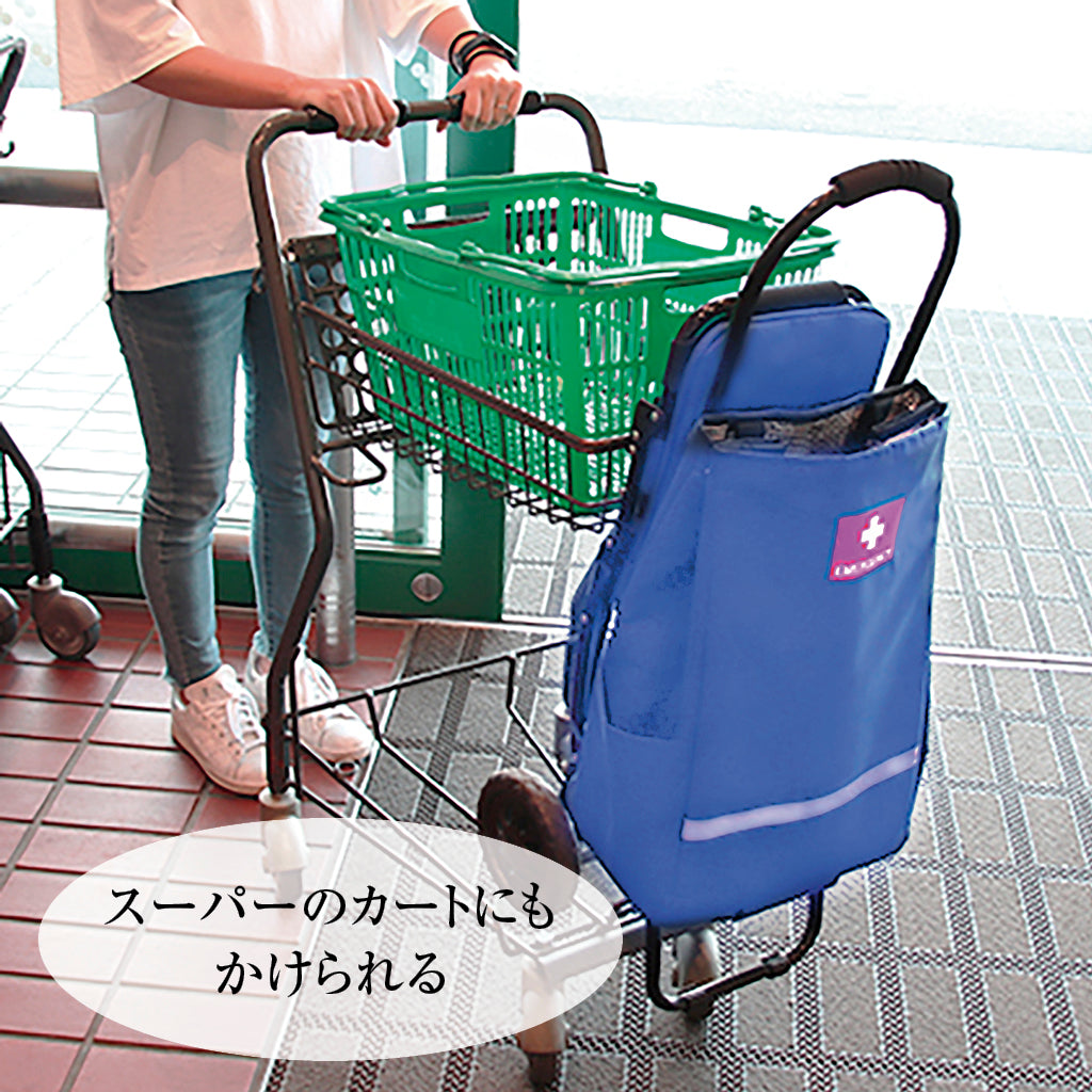 運ぶ、座る、備えるのすべてを一台に災害への備えは、日頃の心を軽くしてくれるもの。毎日の買い物にも使えて災害時にも役立つ椅子つきキャリーカートは、バッグを本体フレームから取り外すこともできるマルチな存在です。耐荷重量100㎏の折りたたみ椅子がついており、外出時の長い行列や休憩時にも大変便利です。段差にも強い大型タイヤは悪路でもスムーズに動き、カートの持ち手のソフトグリップは、重い荷物の負担をやわらげます。丈夫なスチール製フレームで22㎏まで積載可能。「運ぶ」「座る」「備える」――そのすべてを一台でかなえてくれるキャリーカートです。●折りたたみ椅子つきで外出中に休憩可能。高齢者や足腰の弱い方も安心。●普段の買い物にもうれしい便利な機能レインカバーもついているので雨天時にも安心◆◆作り手のこだわり◆◆防災士佐藤有香さん(防災ダイレクト)日本は地震や災害が多い国。だからこそ「備え」は欠かせません。創業以来「誰もが安心して暮らせるように、災害対策ができる商品を」という理念のもと、デザイン性と機能性を兼ね備えた防災用品を開発してきました。しまい込みがちな防災用品はいざというとき取り出しやすいよう、リビングや玄関に置いても違和感のないスタイリッシュなデザインにしています。さらに、見た目だけでなく災害時に役立つ機能を徹底的に追求しているのが大きな特徴です。【商品番号356】====================バッグ外寸:31×47×18.5cmカート高さ:86cm本体重量:約2.7kgバッグ容量:約27ℓ材質:バッグ表地・ポリエステル100%バッグ裏地・アルミ蒸着フィルム座面耐荷重量:100kg積載耐荷重量:22kg仕入元:防災ダイレクト/中国製====================