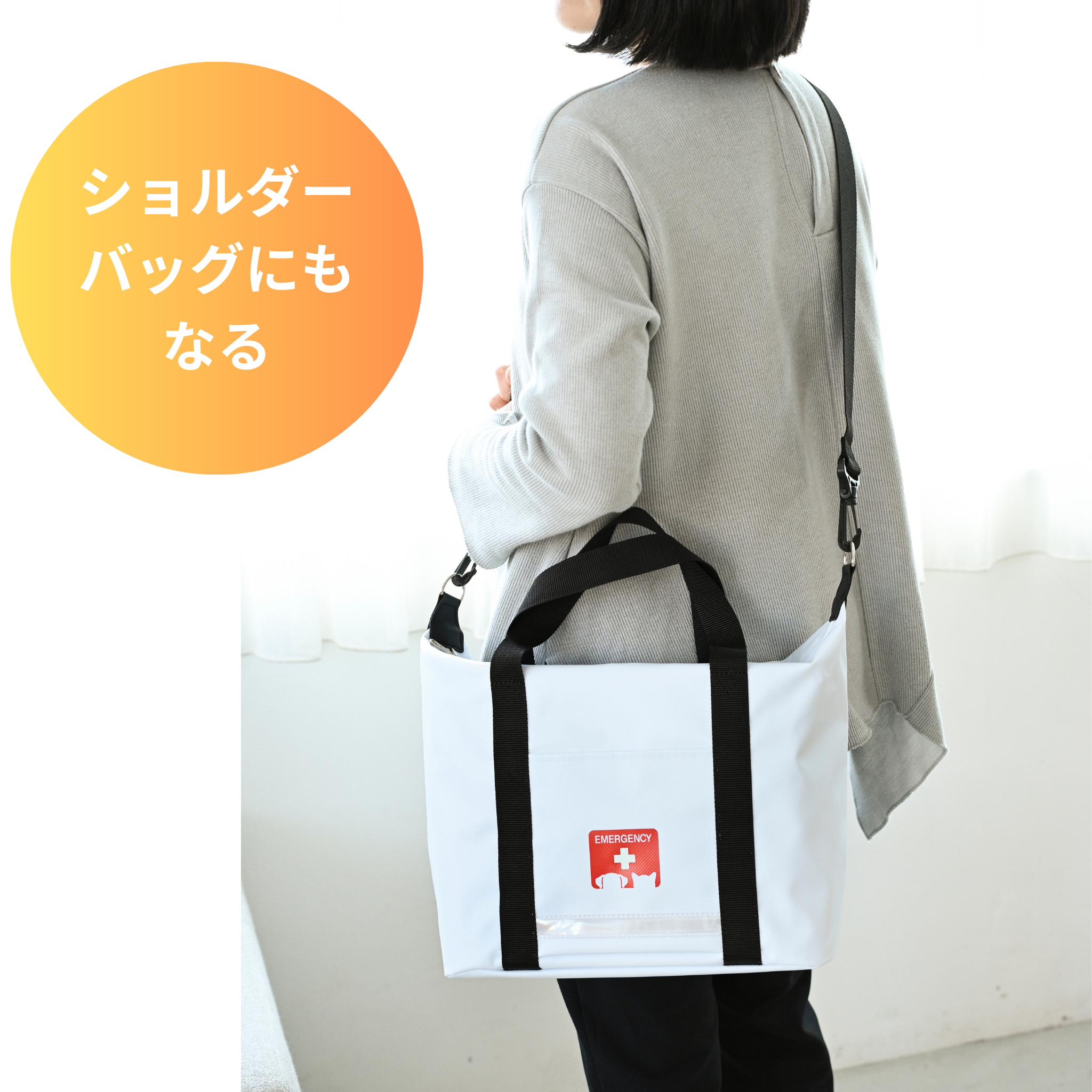 日本は地震や災害が多い国。だからこそ「備え」は欠かせません。創業以来「誰もが安心して暮らせるように、災害対策ができる商品を」という理念のもと、デザイン性と機能性を兼ね備えた防災用品を開発してきました。しまい込みがちな防災用品はいざというとき取り出しやすいよう、リビングや玄関に置いても違和感のないスタイリッシュなデザインにしています。さらに、見た目だけでなく災害時に役立つ機能を徹底的に追求しているのが大きな特徴です。【商品番号357】====================バッグのサイズ:高さ25×幅31×マチ15cm重量:約2.8kg(防災用品、ショルダーベルト含む)付属品:ショルダーベルト( 結束ベルトつき)、底板====================▼▼「にくQR」は単品でも販売!▼▼