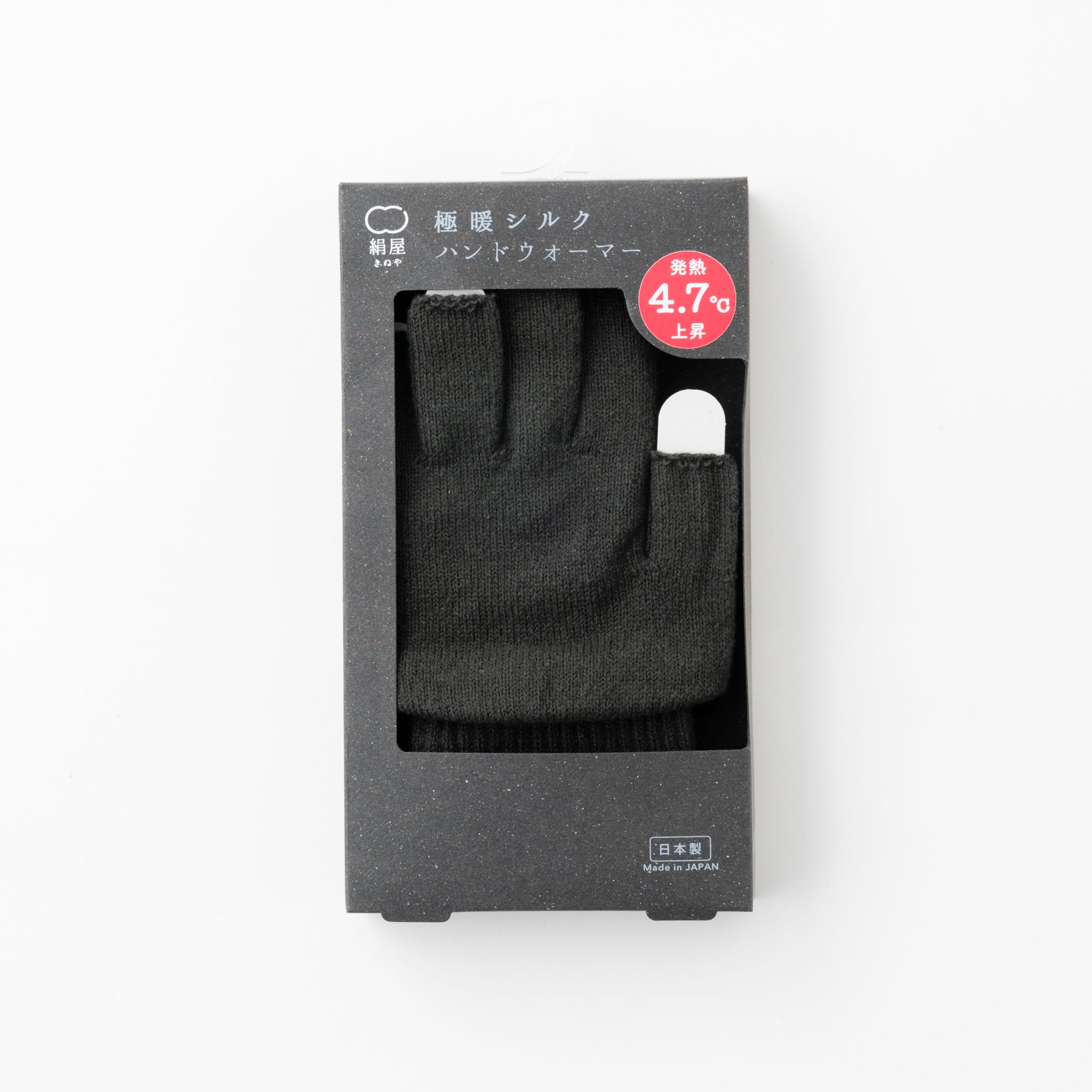 指先の開きは最小限。手首にフィットするゴム編みが冷気の侵入を防ぐ、じんわりと暖かなハンドウォーマー。
