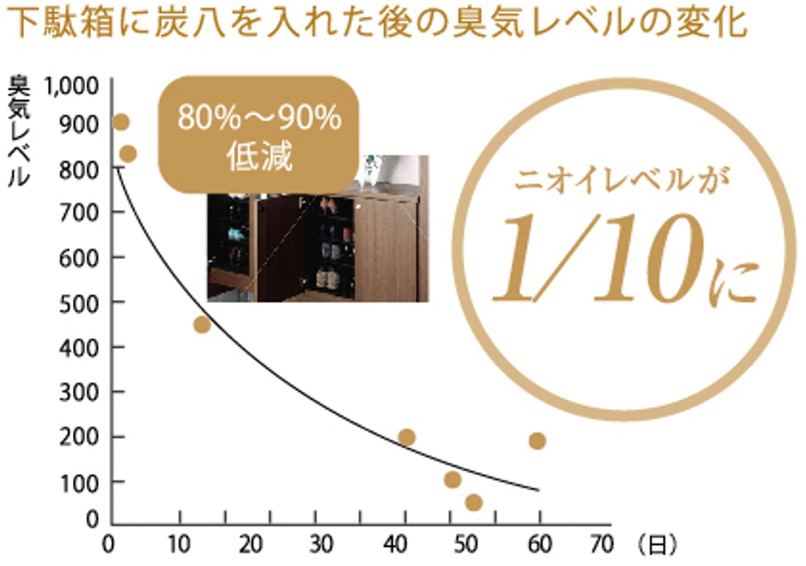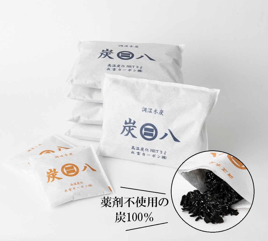 島根大学との共同研究で圧倒的な調湿力を実現電池交換や電気不要で調湿効果が半永久的に続く!「炭八」は島根大学との共同研究と国内最大級の炭化炉を用いることで圧倒的な「調湿力」を実現。昔から知られている炭の優れた調湿性と消臭性。「炭八」は半永久的に湿気を除去し、嫌なにおいを吸着する天然の除湿剤兼空気清浄機。一度、置いたらあとはほったらかしでOKです。解体する家屋等の木材を炭にして再利用することで循環型社会の構築を目指す「炭八」。島根大学との研究により、科学的効果が実証された木炭です。押し入れやクローゼット、トイレなどいろいろな場所に置くだけでOK!◆◆ゆうゆうスタッフが試してみました◆◆車の中に置く芳香剤が苦手でしたが、この「炭八」3Lを5個置いたら嫌なにおいがなくなって快適に。袋が二重になっているので炭の粉が出ないのもgoodです。【使用目安】● 3L大袋…押入れの中:2~3個、クローゼット・トイレ・洗面台:1~2個● スマート小袋…衣装ケース:1個、下駄箱・シンクの下:2~3個【商品番号224】出雲屋炭八調湿木炭 大袋×5袋+スマート小袋×2袋セット======================原材料:調湿木炭内容量:(大袋)3L、(小袋)0.4Lサイズ(約):(大袋)35cm×28cm×厚さ5cm (小袋)19cm×19cm×厚さ2.5cm重さ(約):(大袋)300g (小袋)40g不織布2重包装(ポリプロピレン)仕入元:出雲カーボン/日本製======================▼まずはお試ししてみたい方はこちらスマート小袋3個セット