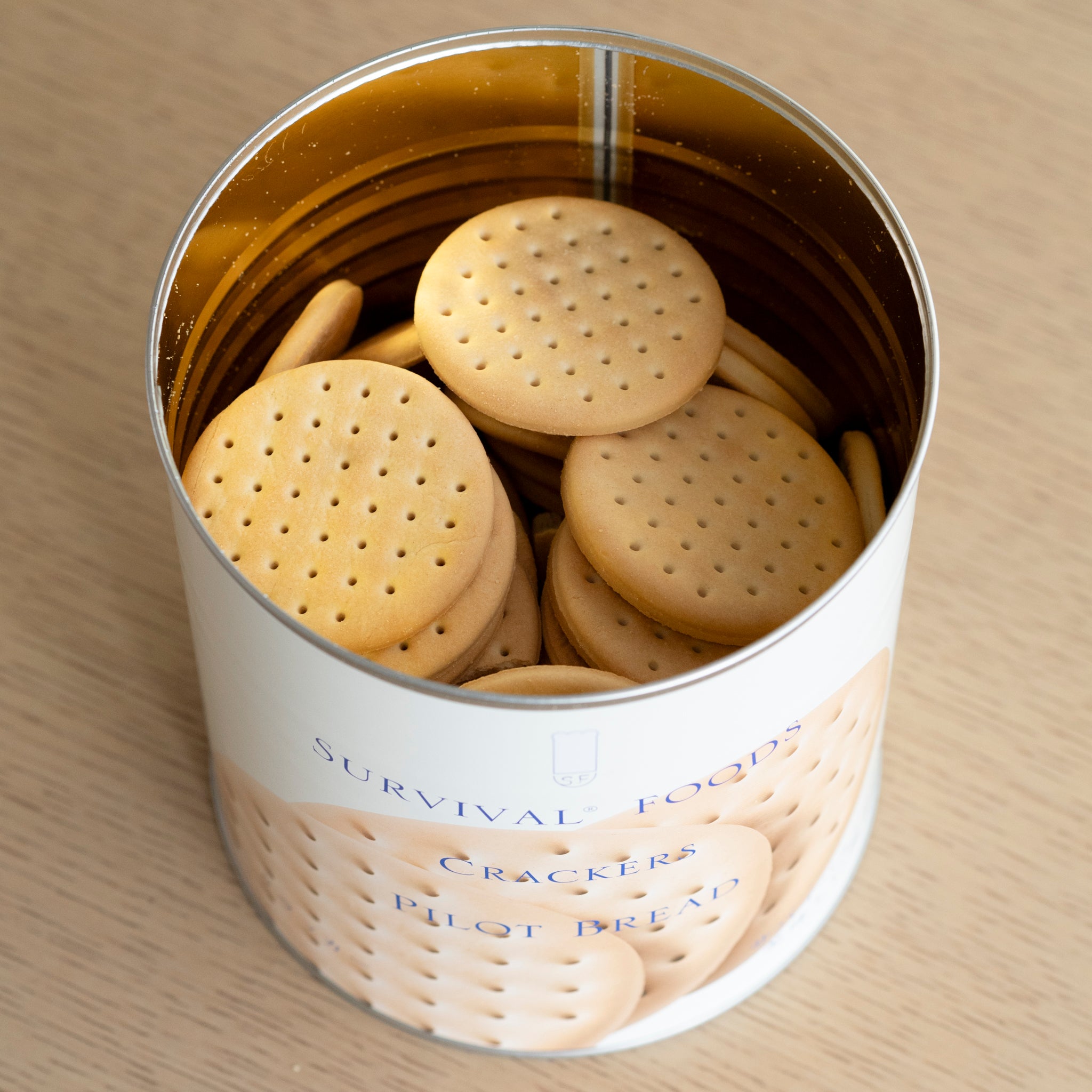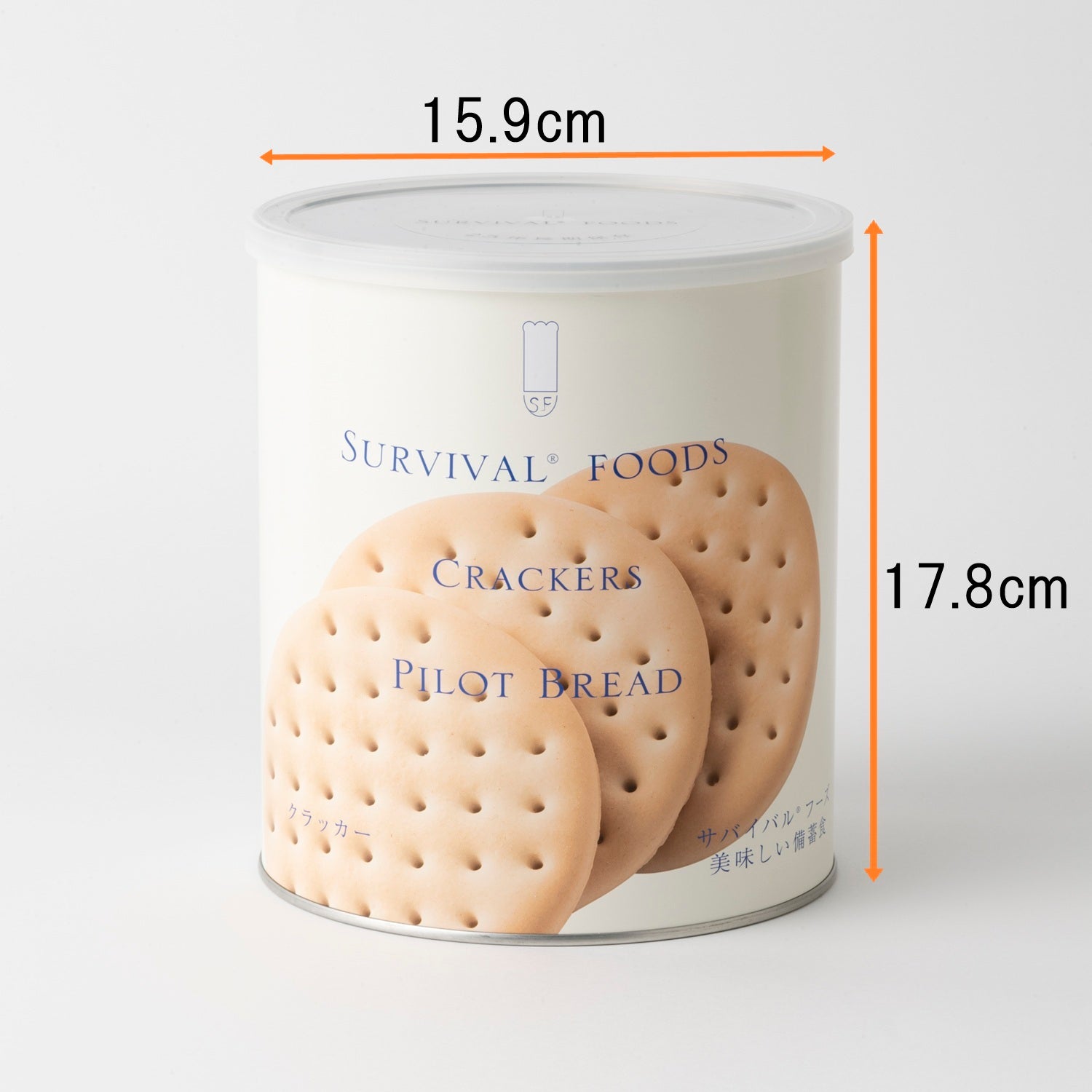 四半世紀保存可能!主食にもなるクラッカー厚みがあって食べ応えのあるクラッカーです。素材の風味が生きているので、そのままでも、おかずに合わせてもおいしくいただけます。安心・安全な国内製造。さまざまな自治体、省庁、病院、企業等で備蓄用として採用されています。大きな缶で大きな安心!●回転備蓄にして、普段のおやつにも●缶切りつき【商品番号305】サバイバルフーズ クラッカー 大缶====================商品内容:クラッカー910gサイズ:15.9×17.8cm (大缶1号缶)標準食数 :約10食相当栄養成分表示(食品100gあたり):エネルギー475kcal、たんぱく質9.2g、脂質18.1g、炭水化物68.7g、食塩相当量1.4g原材料:小麦粉(国内製造)、ショートニング、砂糖、食塩、水あめ、ベーキングパウダーアレルギー情報:小麦賞味期限:約25年(常温保存)仕入元:防災用品専門店ヤマックス/日本製====================