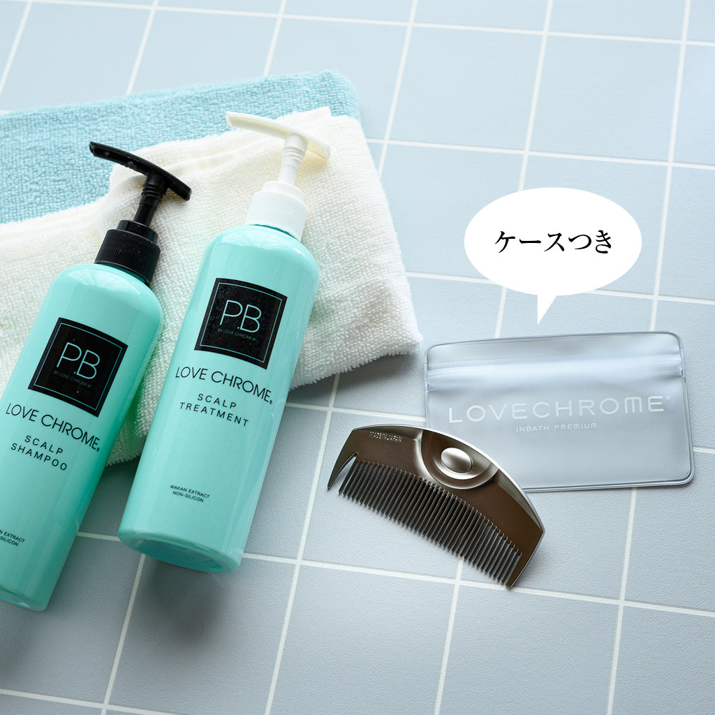 スカルプシャンプー3,300円スカルプトリートメント3,300円ラブクロム(R)INBATHツキ プレミアムブラック5,720円の特別セット